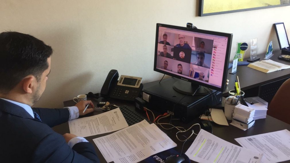 O presidente da Finep, Waldemar Barroso Magno Neto participou da videoconferência, juntamente com Alberto Dantas, diretor; Rodrigo da Silva Lima, gerente do Departamento Regional Norte; Kalil Maia, Analista e Gerente Substituto do Departamento Regional Norte; e Newton Hamatsu, Superintendente da Área de Inovação.